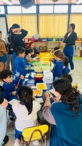 • 🍓 Preparación de brochetas de frutas: los más pequeños elaboraron brochetas coloridas y nutritivas, descubriendo nuevas formas de disfrutar frutas y verduras.